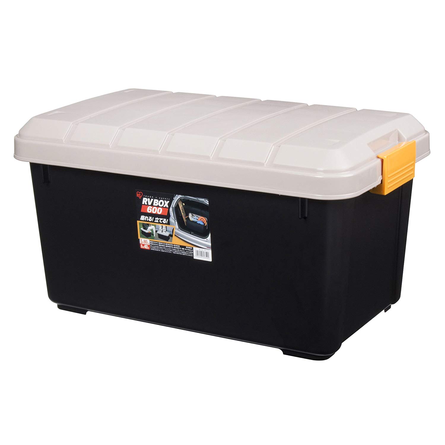 †リアの積載関係。 リアキャリアに、 バイク旅人ご用達のアイリスオーヤマ製のRVBOX。 それと固定用の荷締めベルトと アルミ合金カラビナ。