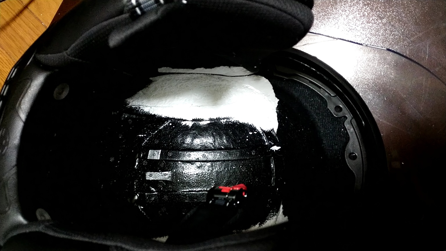 が、合わなかったら、痛くて痛くて、結果的にバイクに乗る事自体が嫌になるので、諦めて少し高価だけど内装が外せて交換できるモデルを選んだ方が無難だろう。僕がやらかした様に、発泡スチロールを削って合わせるという荒業もあるけれど、当然、安全性は全く担保できないし、少し削る→被る→少し削る、という作業、初チャレンジした僕は10時間位掛かった(泣き)というのを覚えておいて欲しい。