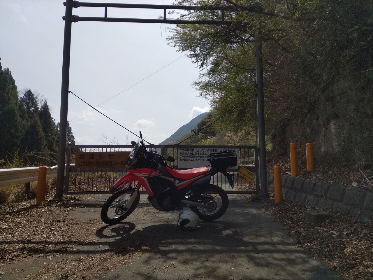 ムルだとちょっとしんどかったけど、CRFなら問題ないだろうし、あわよくば周辺のダート林道を探索しようという魂胆である。googleマップだと結構林道ありそうなんだけど、10年近く前の情報だったりするし、何より林道は通行止があるから実際に行ってみて探そうという訳だ。
