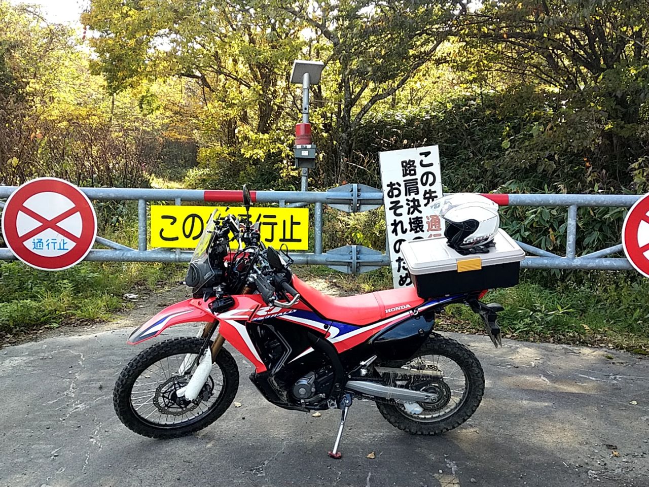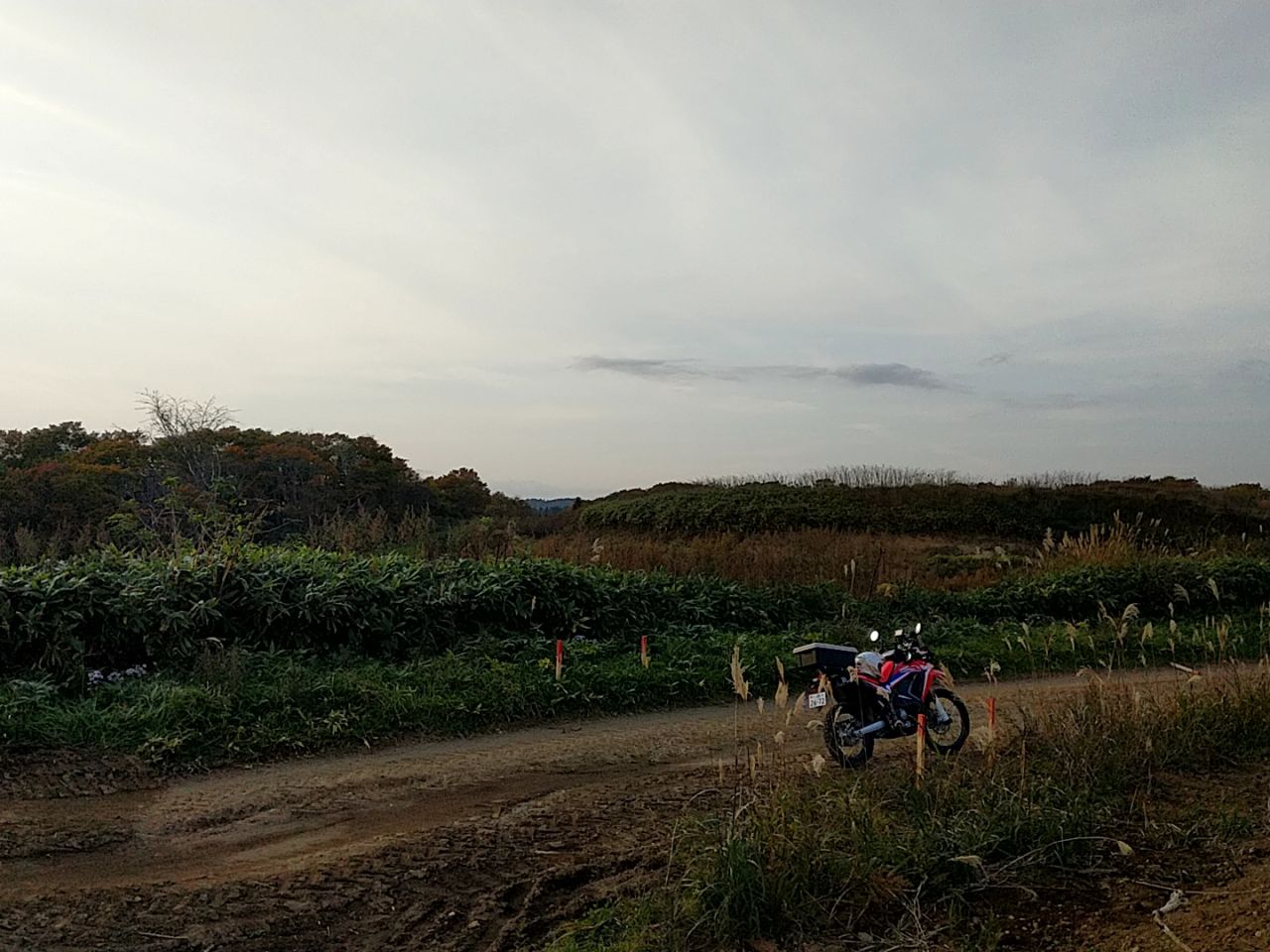 北海道でコケた2回は、いずれもこんな感じの所に突入してフロントタイヤとられて転倒したので、今回は自重。