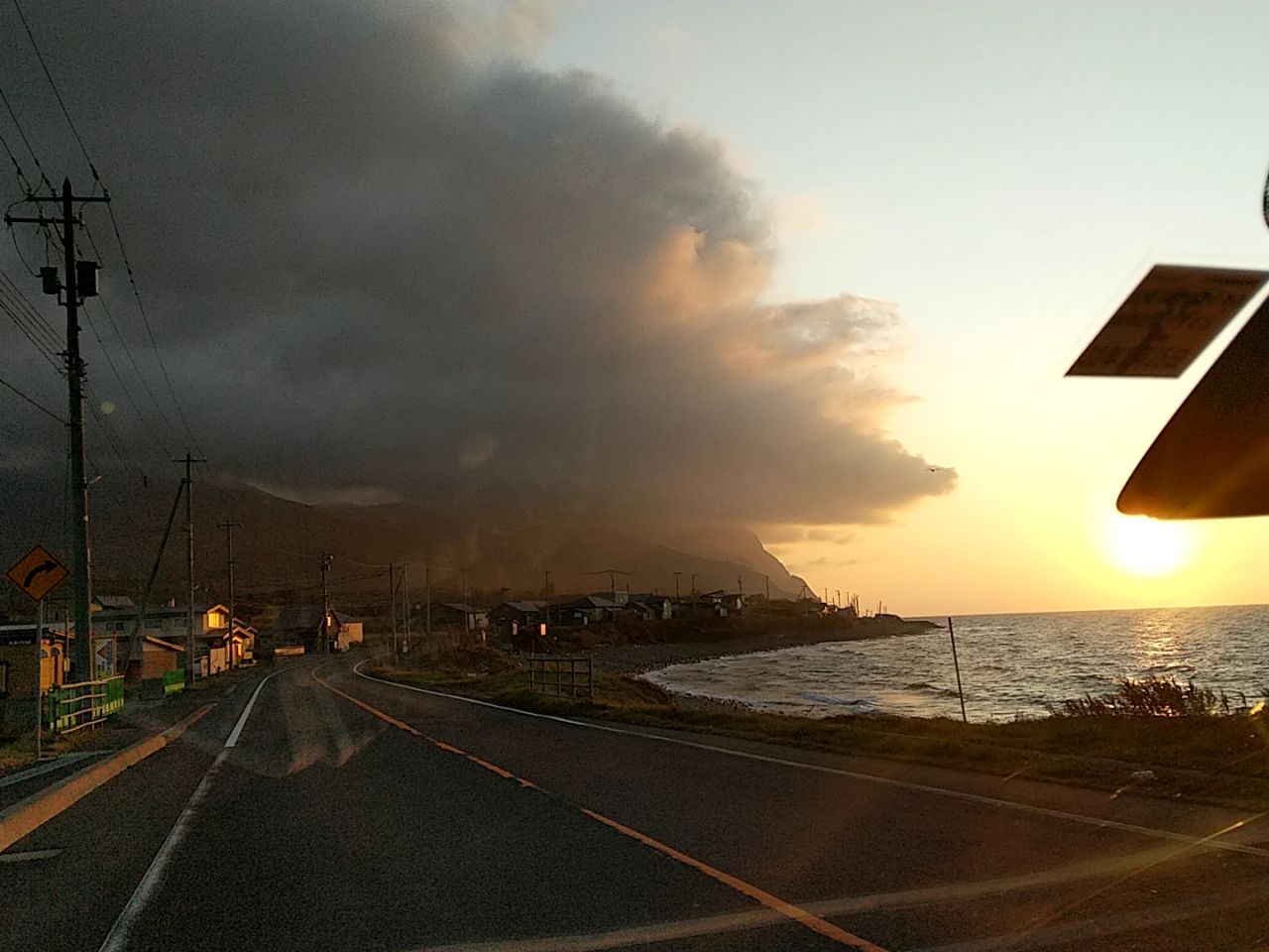 そうだよ、北海道っつっても平均時速50kmph位だったよ!函館まで70kmで1.5時間とかだったじゃん俺!バカ!!と自分のバカさ加減を罵りつつ、室蘭を超えた辺りで日が沈んだのでパチリ。