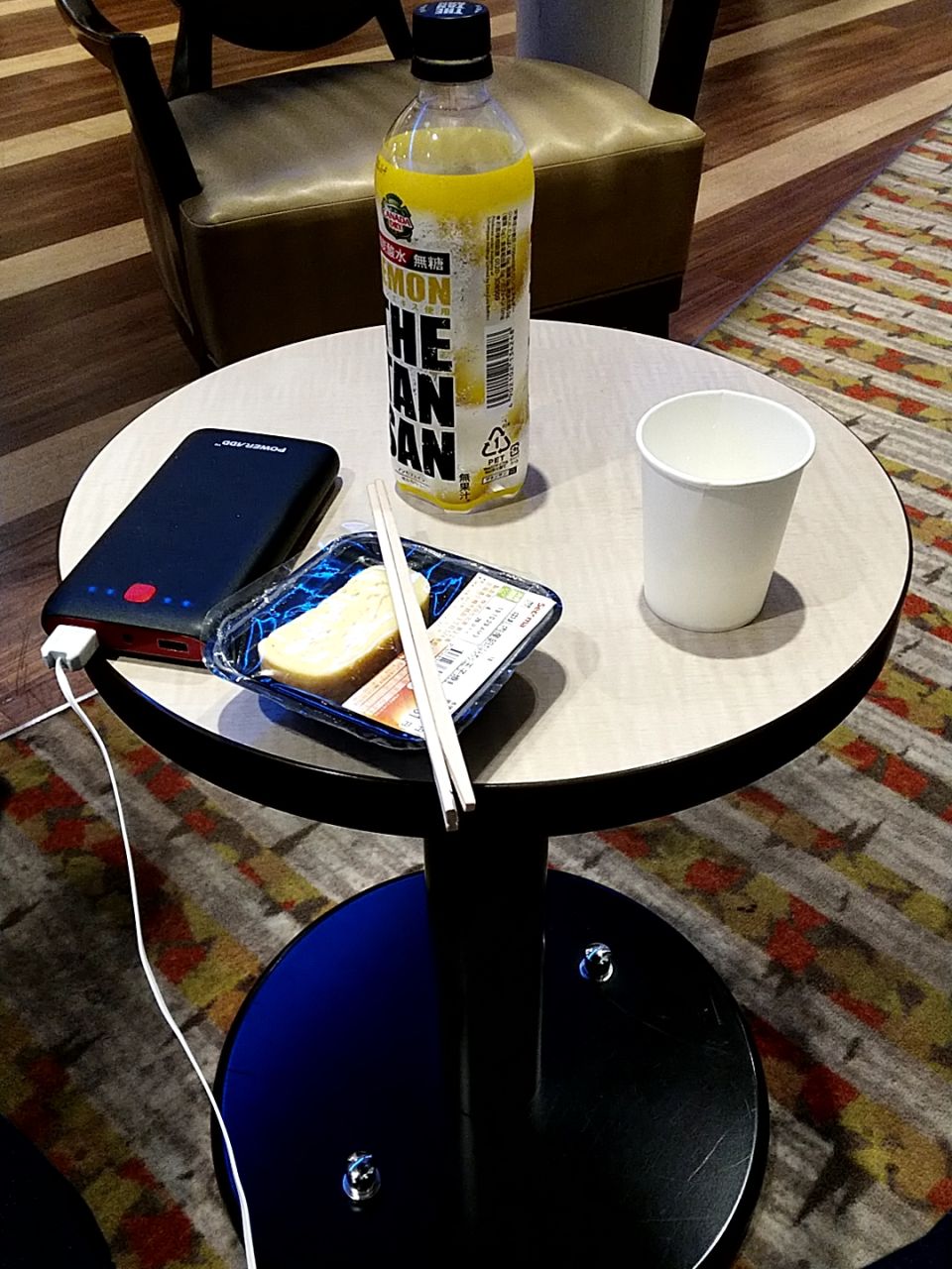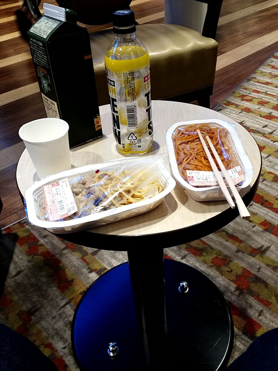 という事で、往路を同じ様に共有スペースの一角に陣取って……