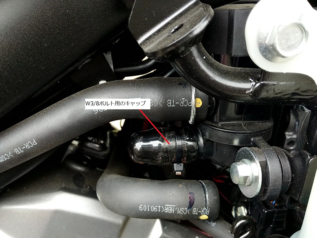 んでもって、W3/8のボルト用のボルトキャップを被せて、脱落防止用にインシュロックで縛った。