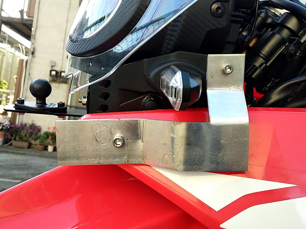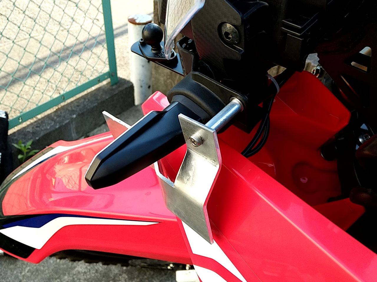 - 有り合わせの部品で延長してみた→車体止め点との距離が遠くて、振動でまくって却下
