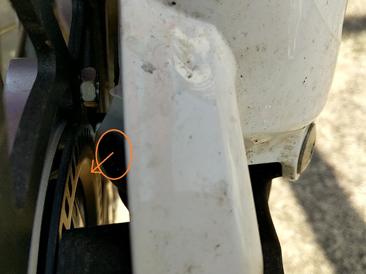 仕方ない、アクスルクランプ緩めてタイヤ外すか……とアクスルシャフト周辺を観察してみたら。