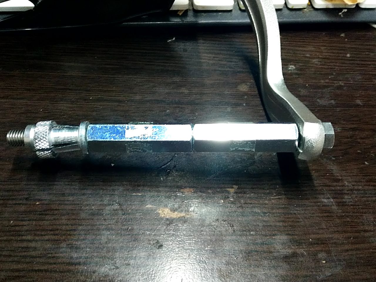 M8 150mmのロングボルトに、3/8W(インチ系)の長ナット(本当はM8長ナット欲しかったのだけど在庫がなかった)2個.